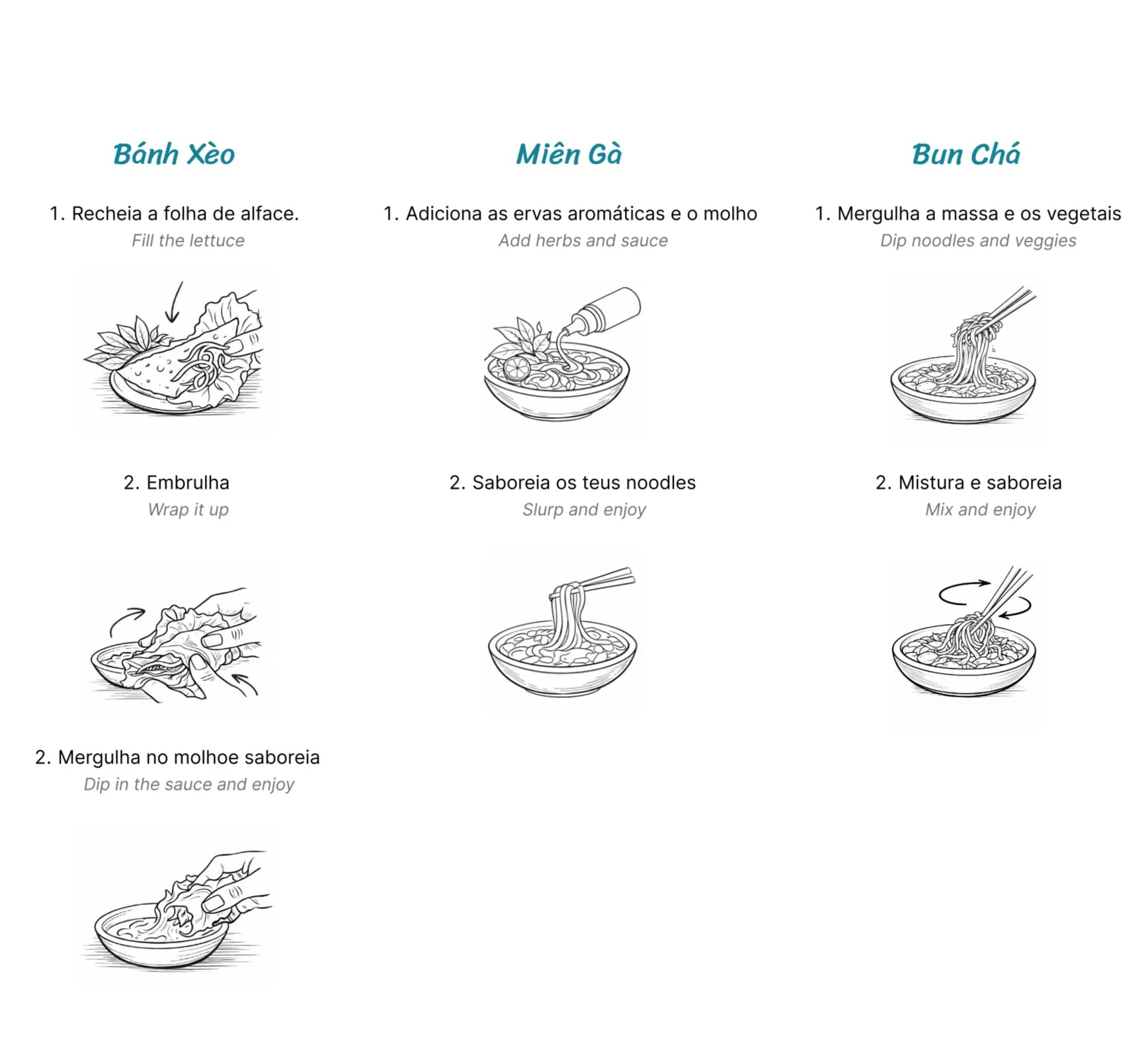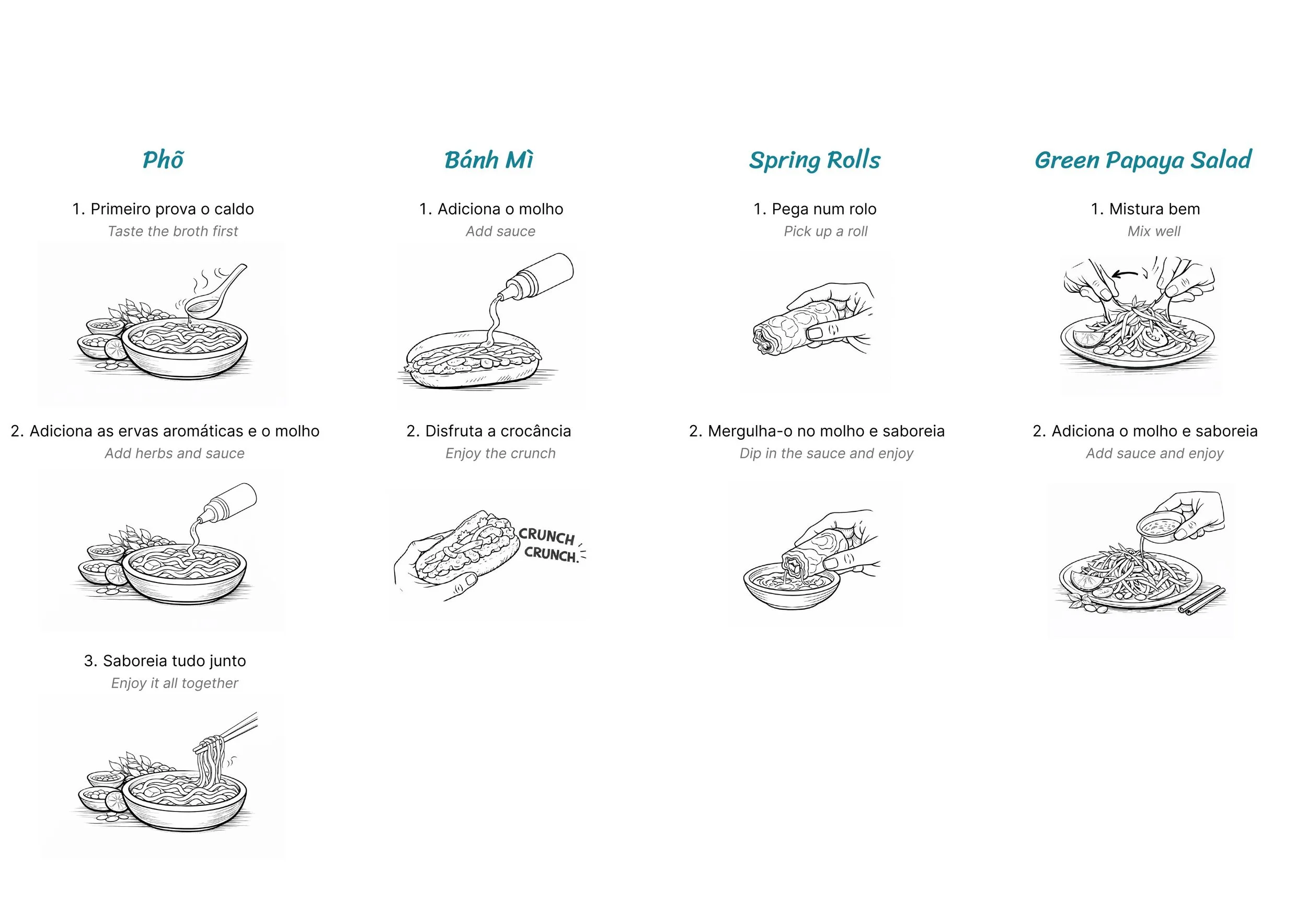 Um guia à mesa para descobrir, passo a passo, como apreciar alguns dos pratos mais emblemáticos do Vietname