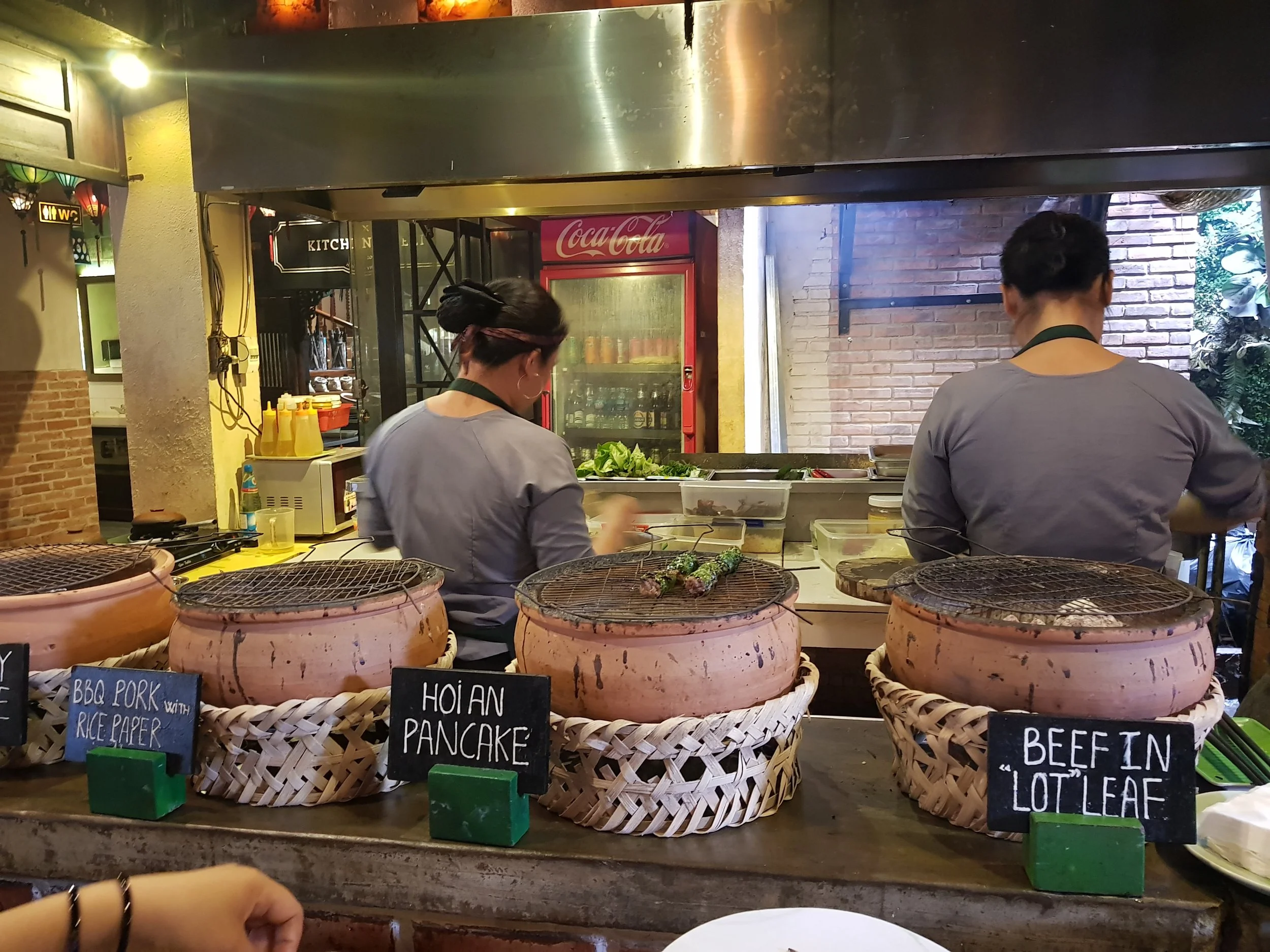 Caldo aromatizado com especiarias, noodles de arroz, rebentos de soja, carne de vaca, almôndegas vietnamitas e ervas aromáticas.